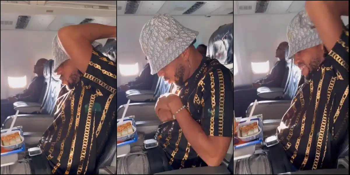 Famed actor, Charles Okocha’s priceless reaction trends as their plane hits turbulence and shakes him up.