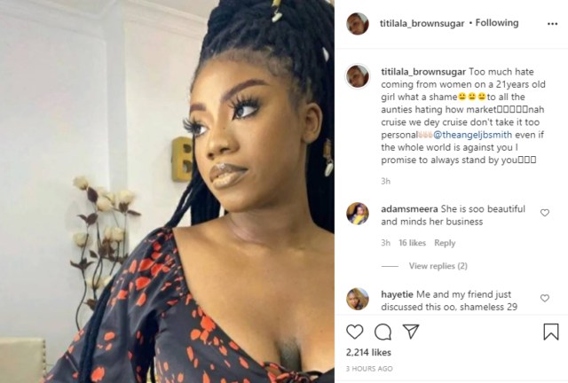 In reaction, Angel’s mother, Titi, took to Instagram to lament the level of hate from adults on the show to a 21-year-old lady.