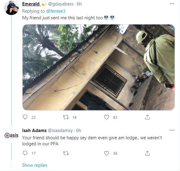 The photos which were shared by a Twitter user, @fentee3 depicts a very ugly and disgusting environment where people considered to be children of the government and serving their fatherland actually live.