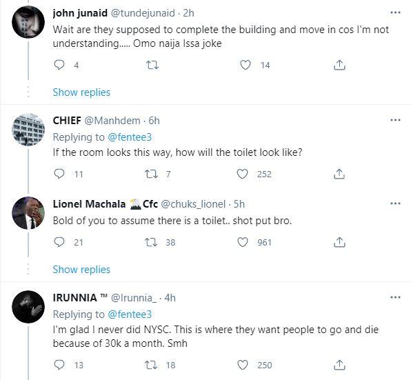 Nigerians have reacted to the photos of an awful and dilapidated corpers’ lodge in Imo state, Mbano local government area precisely.