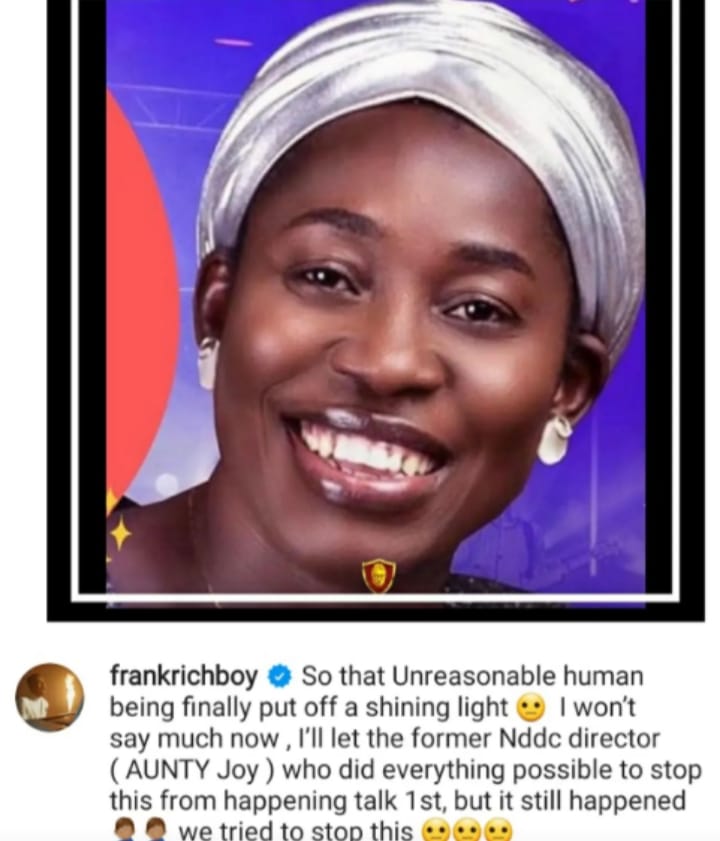 “So that Unreasonable human being finally put off a shining light. I won’t say much now , I’ll let the former Nddc director ( AUNTY Joy ) who did everything possible to stop this from happening talk 1st, but it still happened. we tried to stop this”