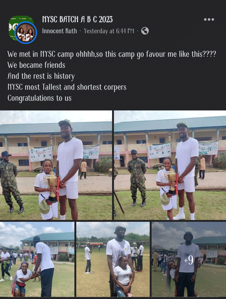 According to them, they were identified as the tallest and shortest corpers at the NYSC camp, making them an unusual pair.