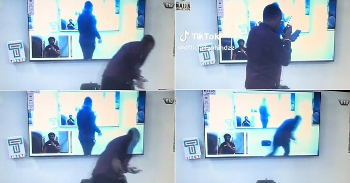As soon as he heard the voice, he immediately fled the scene but eagle eyes netizens were quick to capture and record the moment on camera.