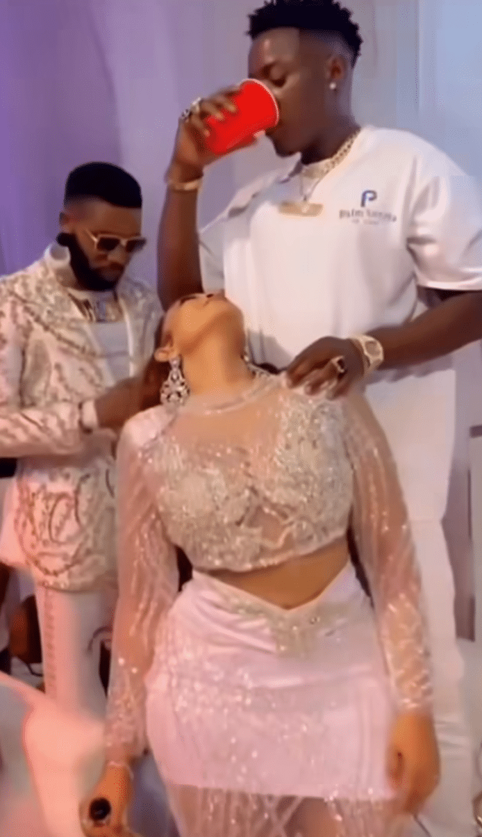 Surprisingly, the young man drank from a cup and from his mouth, he poured some drink into his woman’s mouth.