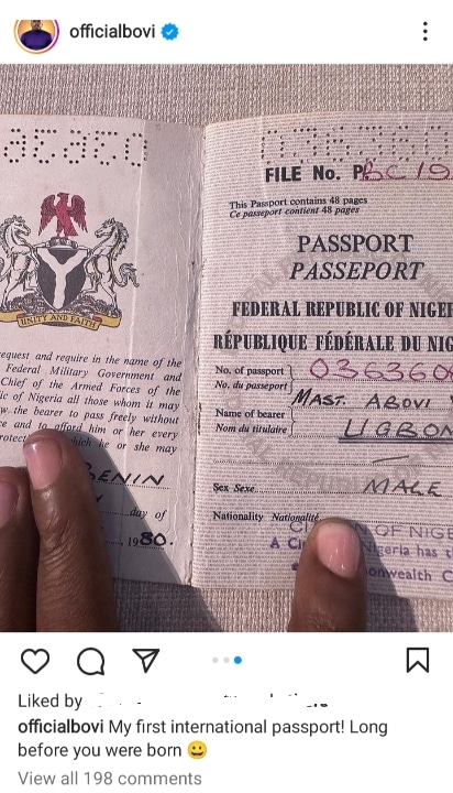 The photo was shared by the comedian via his Instagram page as he reminisced about life while revealing that it was his first international passport.