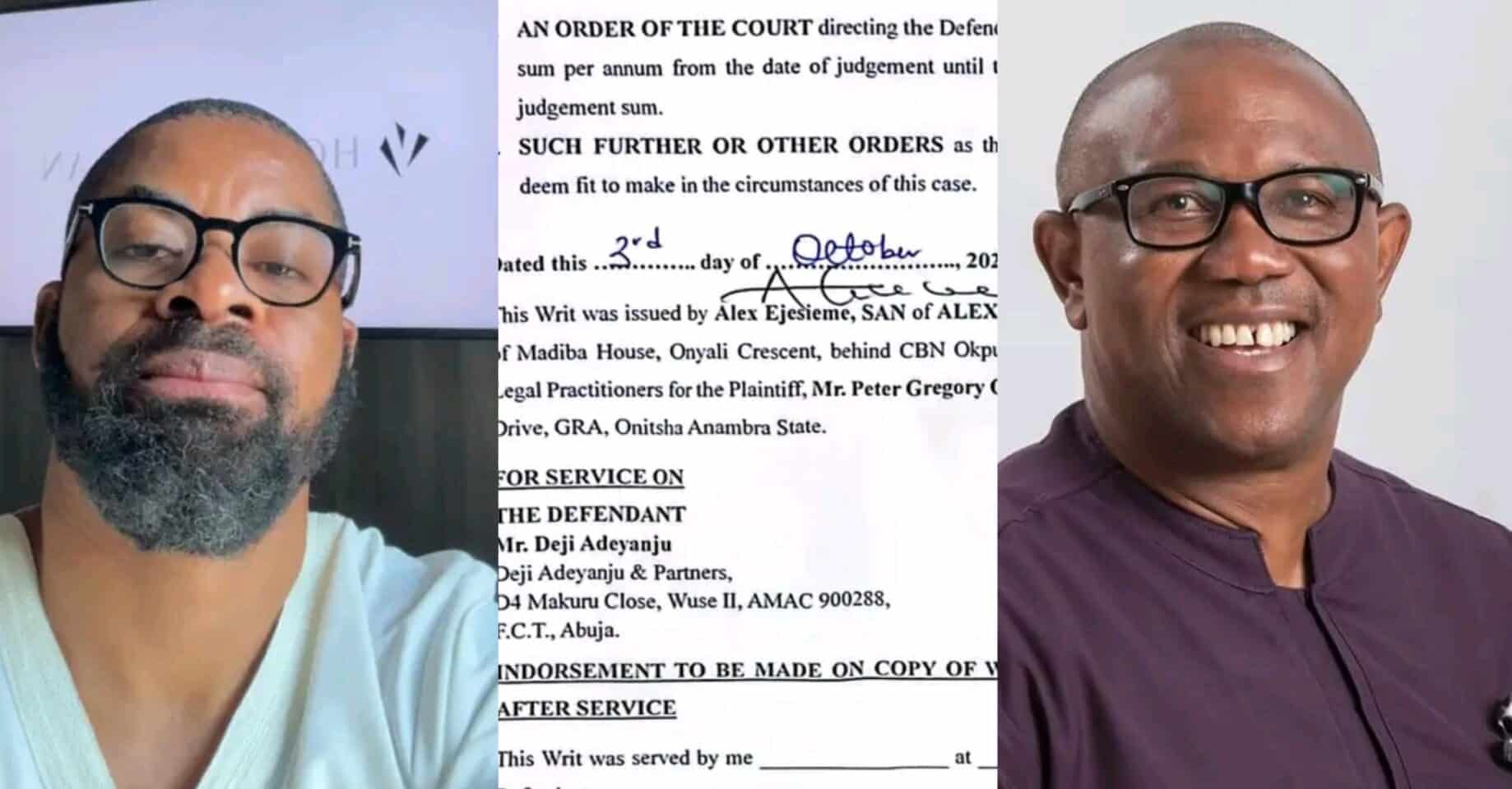 Peter Obi files ₦1.5 billion defamation lawsuit against Deji Adeyanju
