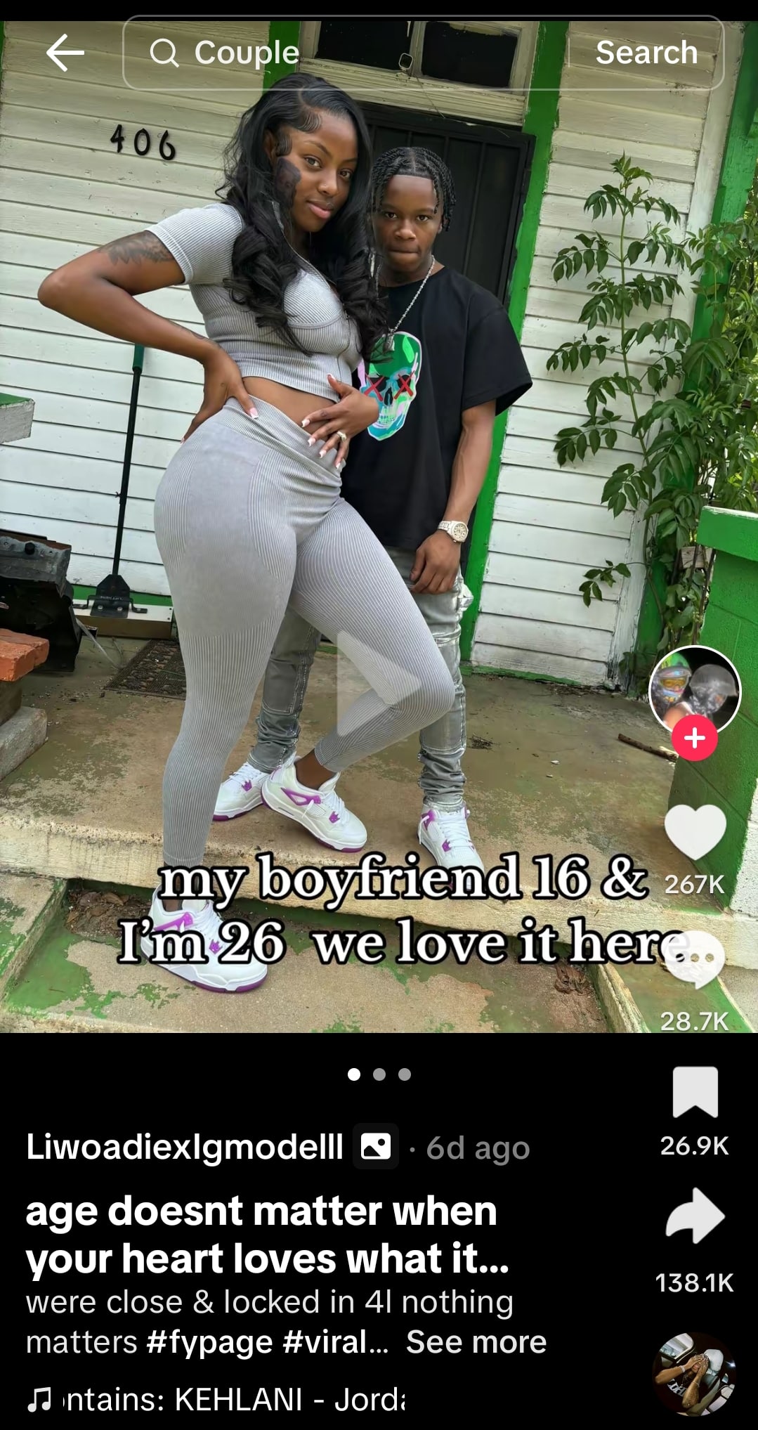 A 26-year-old woman breaks the internet as she flaunts her 16-year-old boyfriend on social media, sparking immediate reactions.