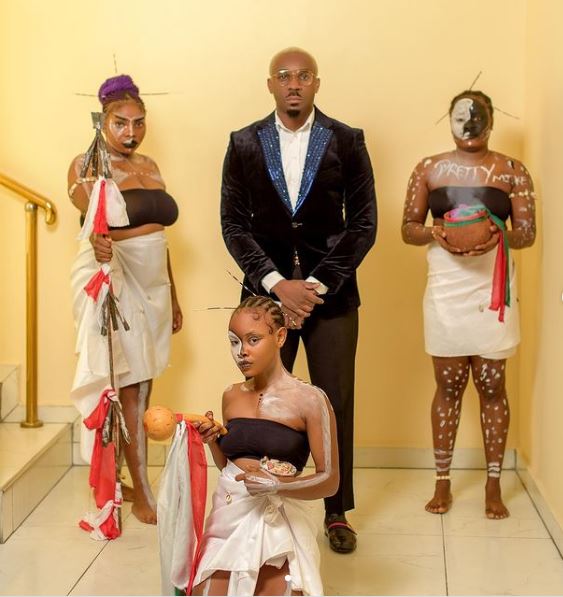 Socialite, Pretty Mike recently showed up at an event in Rivers State, Port-Harcourt with 3 ladies donned in a spiritual outfit.