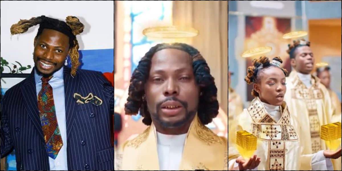 In the video for his new song, Asake, alongside his backup singers and dancers, portrayed themselves as priests conducting a mass in a Catholic church with angelic rings on their heads.