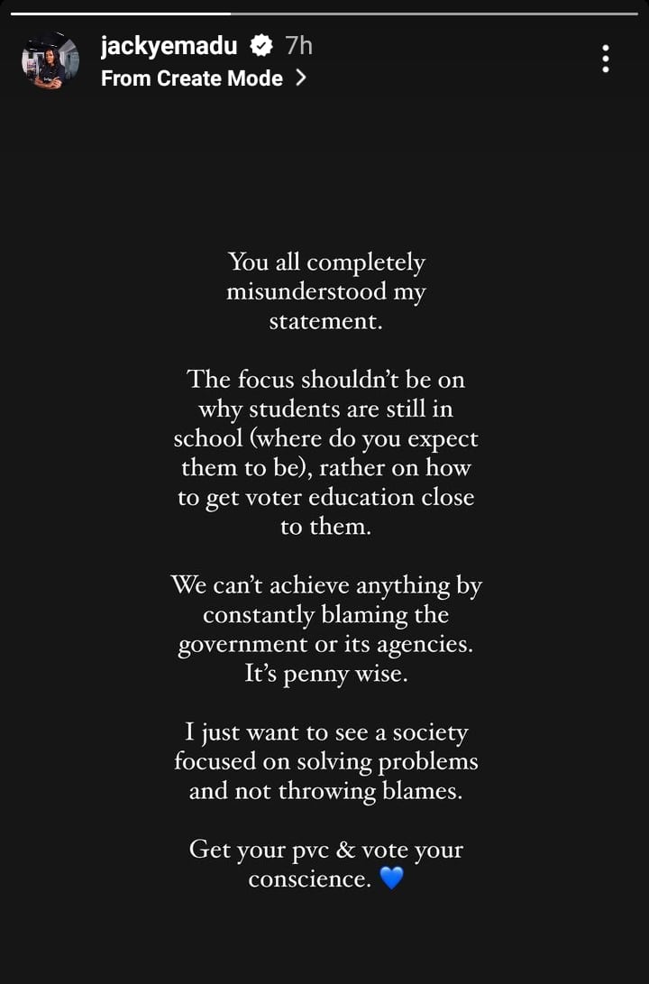 BBNaija star, Jackye tackles veteran singer, Paul Okoye after he queried why students are still in school despite short PVC-collection-timeframe.
