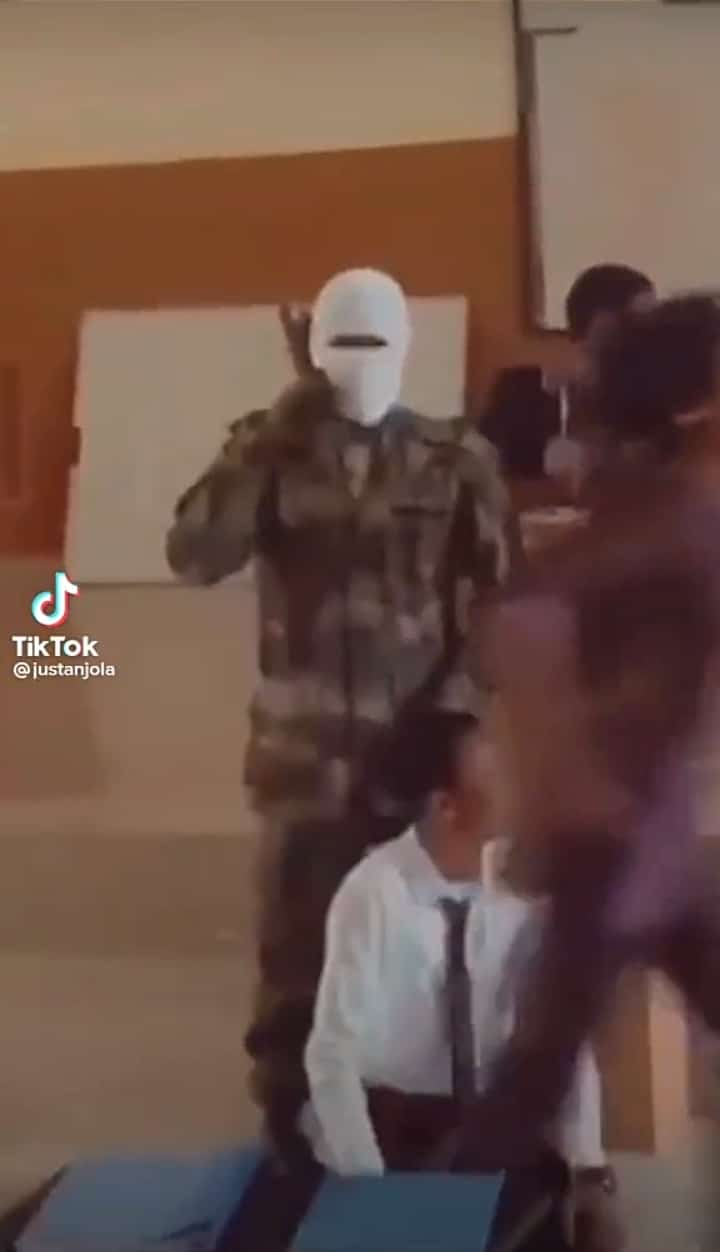 Lady shares how her coursemates took to their heels after they mistook guys dressed in military uniforms, during a group presentation, for bandits.