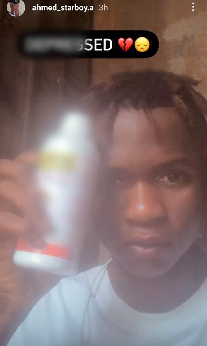 “Someone should check up on him” – Reactions as Starboy Ahmed shares cryptic video of himself holding huge bottle of sniper (Video)