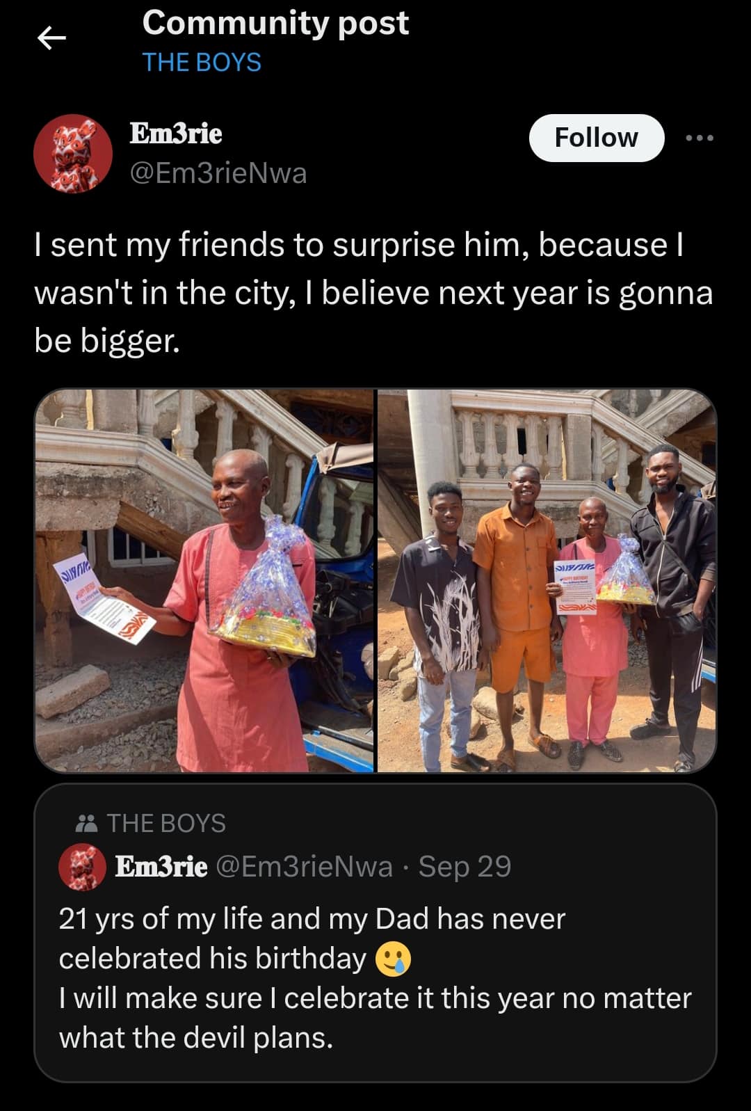 In a post shared on his X (formerly Twitter) page, he explained that, since he was born, he had never seen his father celebrate a birthday.