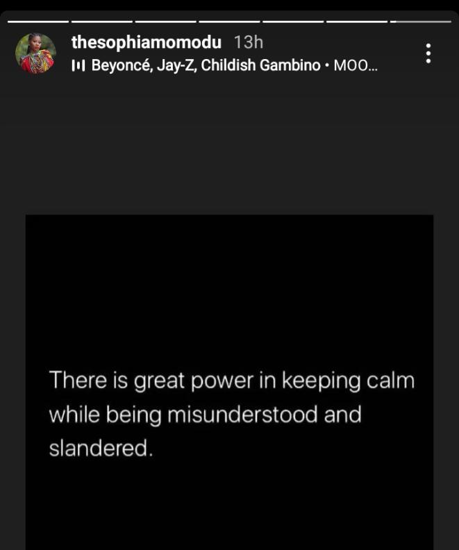Reacting to this, Sophia Momodu said although she’s being misunderstood and slandered, she has decided to remain calm.