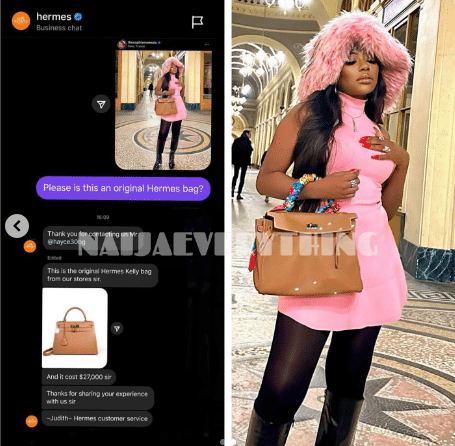 Apparently, the netizen took to Hermes’ DM and shared a photo of Sophia Momodu’s Hermes bag and the organization confirmed that the bag is indeed the original Hermes bag.