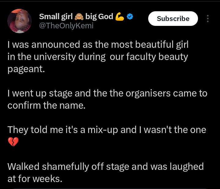 “Sorry you’re not the one” — Lady shares how she was humiliated after thinking she was the most beautiful one