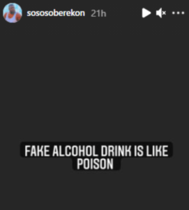 According to a series of posts he made on his Instagram stories, he revealed being served with fake alcohol drink is like poison.