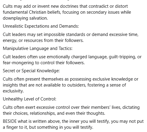 “ Cults often encourage members to cut ties with family and friends who don’t share their beliefs, creating a sense of dependence on the group,” he wrote.