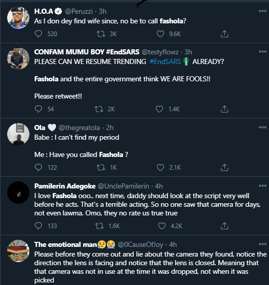 Federal Minister of Works and Housing, Babatunde Raji Fashola is currently trending on Twitter after discovering a hidden camera at the spot of the Lekki tollgate massacre.