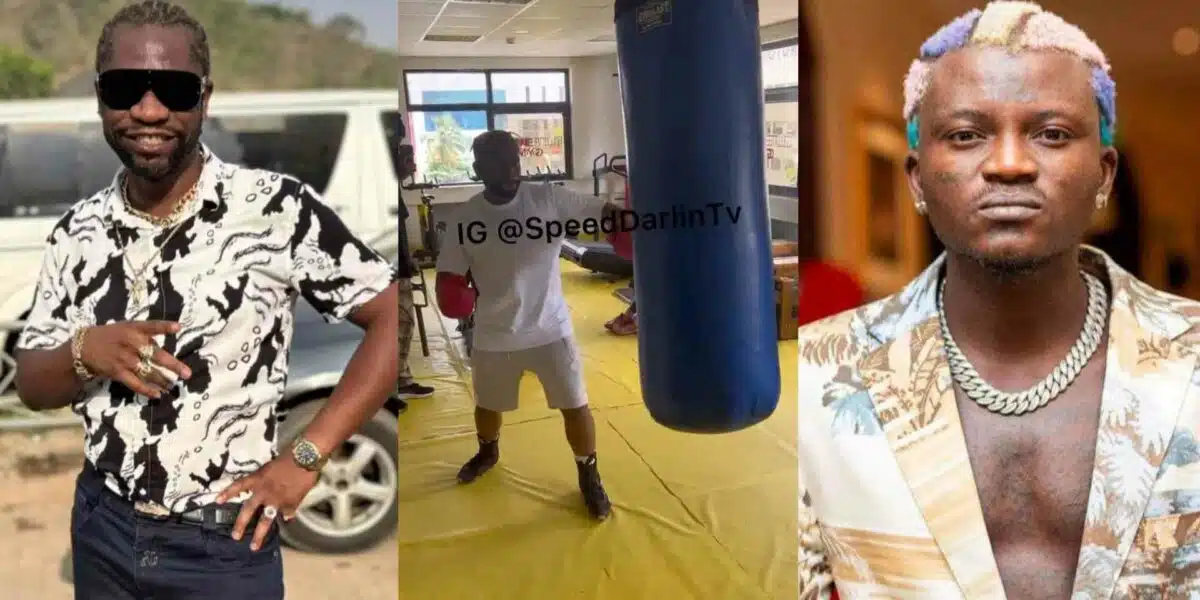 Popular singer, Speed Darlington spotted training hard at a gym ahead of his boxing match with his colleague, Portable.