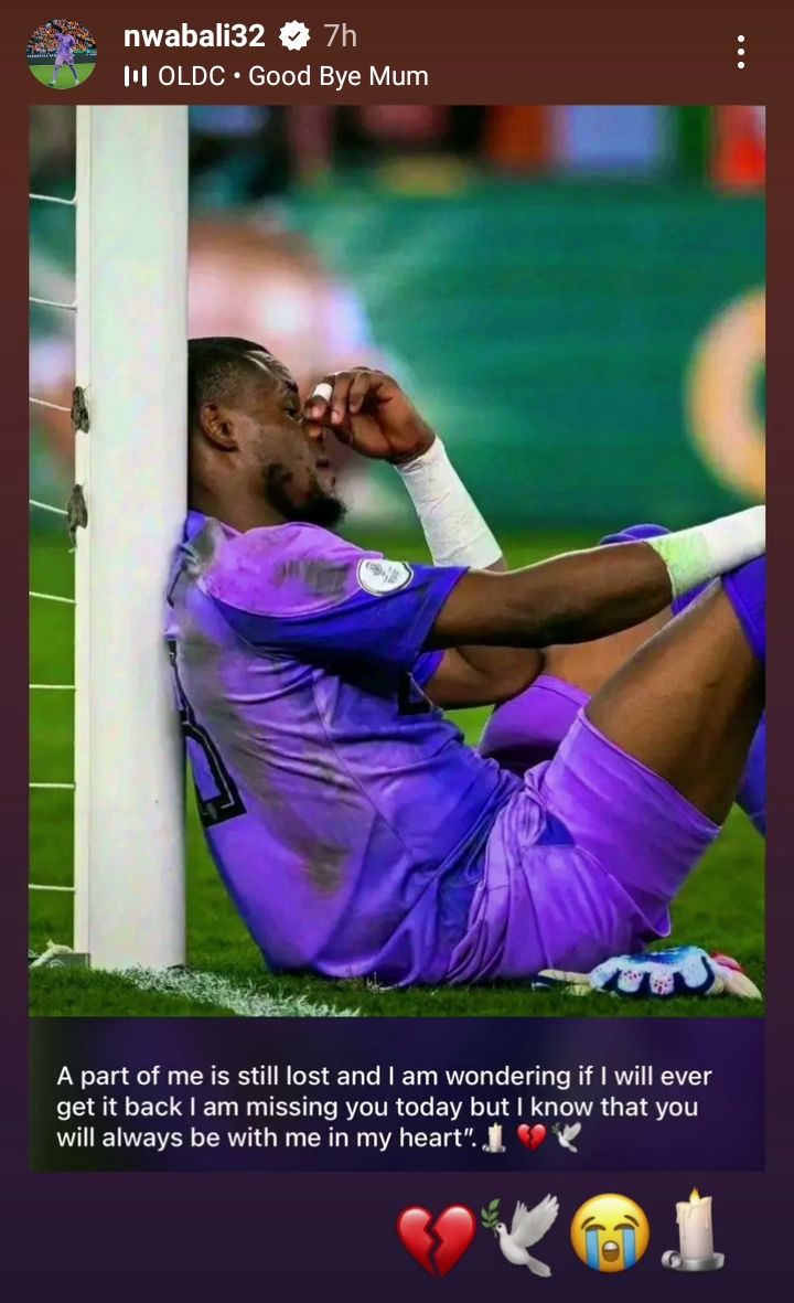 Super Eagles goalkeeper, Stanley Nwabali, has penned a heartfelt tribute to his late mother, reflecting on the poignant impact of her passing.