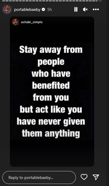 “Stay away from people who benefited from you but act like you gave them nothing” – Portable throws shade