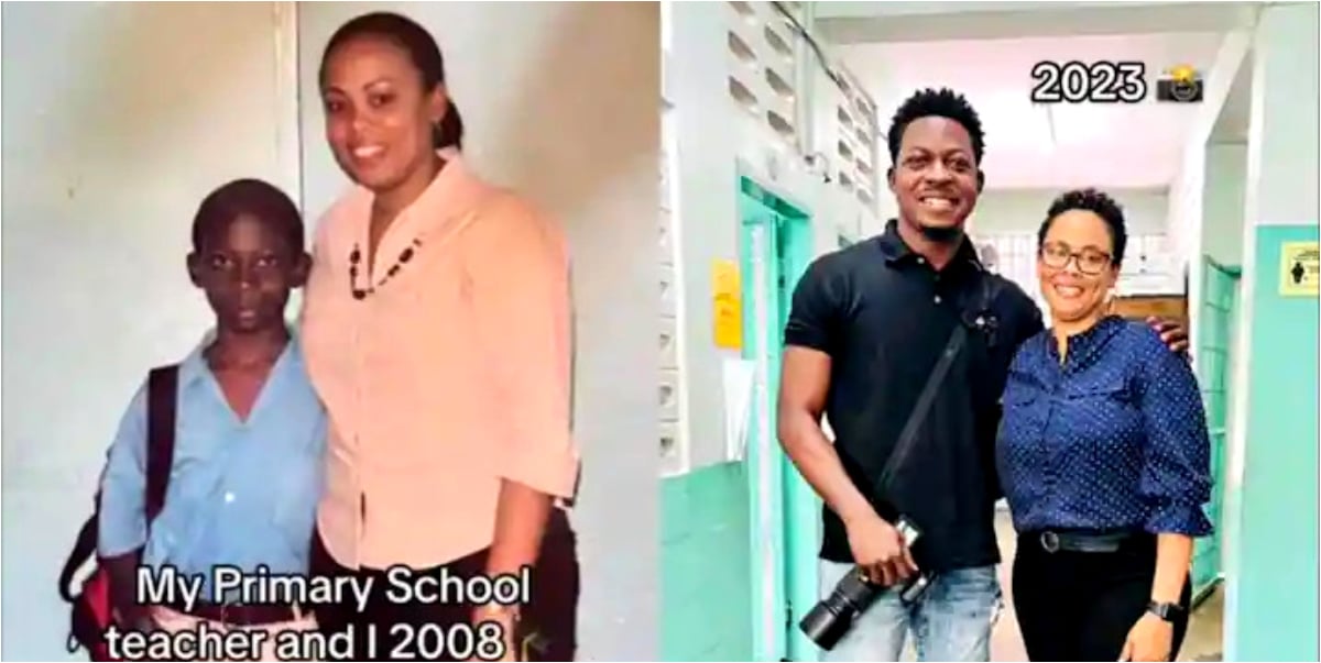 In the new photo which dates from 2023, the student of the teacher was seen all grown and taller than his teacher. Social media users have admired the beauty of the teacher as many say she looks much younger than in her past photo.