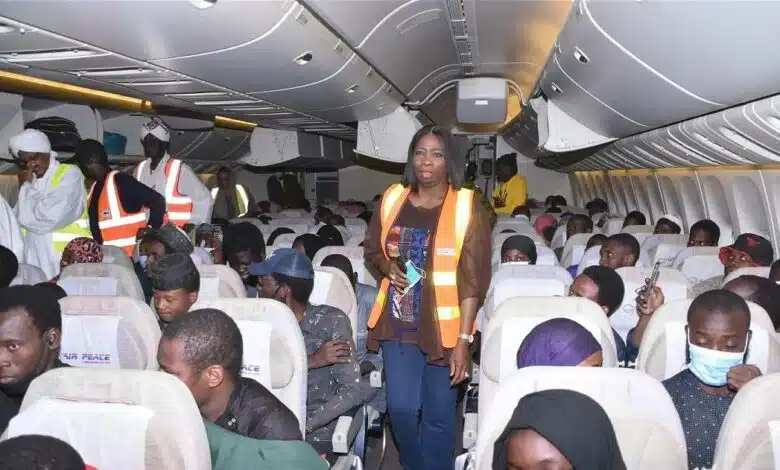 The Nigerian Air Force transported 376 individuals who arrived at Nnamdi Azikiwe International Airport in Abuja via a C13 military aircraft late on May 03, 2023.