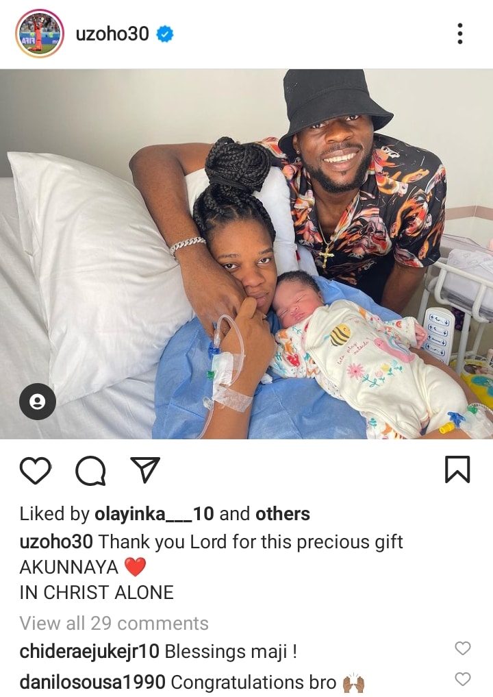 Super Eagles goalkeeper, Francis Uzoho welcomes baby girl with wife