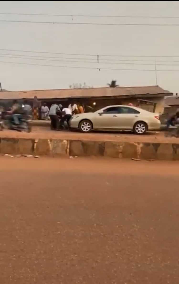Angry mob pounces on a suspected ritualist in Auchi who tried to run away after allegedly dropping a lady from his car who exhibited some level of insanity.