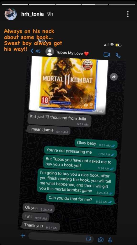 In the WhatsApp chat, Sylvester shared a screenshot of a mortal combat game, and told his sister that it costs only N13,000 from Jumia.