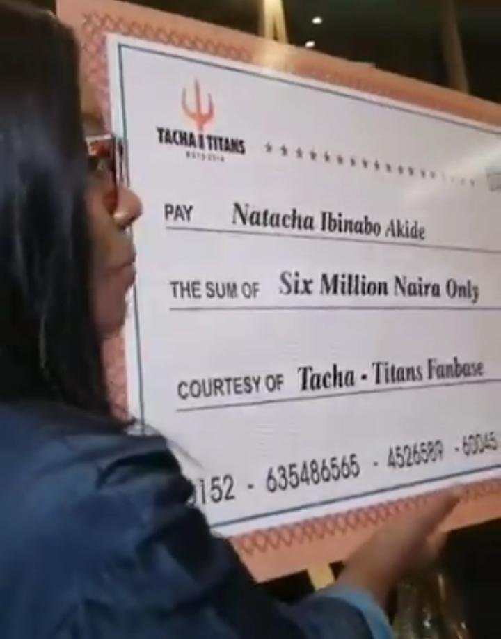 Congrats @Symply_Tacha tacha fans dey vex o! Mad love for her… N6million as gift yo! With van self #everything tacha pic.twitter.com/v4SVdbWY9q