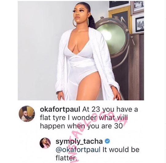 ‘@Okafortpaul it would be flatter’, Tacha wrote.
