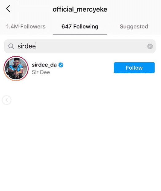 Many people are curious as to why Tacha unfollowed him. There are claims that Tacha unfollowed Sir Dee, alongside Omashola and Esther a week before his comment on Mercy’s page.