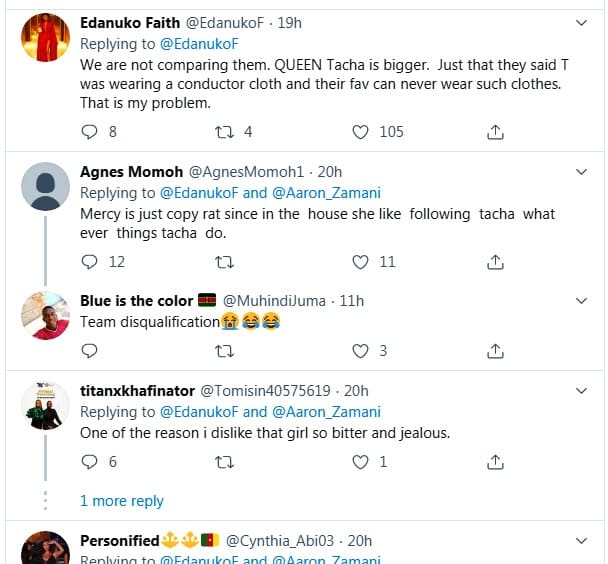 It looks like the rivalry between Mercy’s fans and Tacha’s fans is not ending soonest as they seems bent on dragging one another on social media.