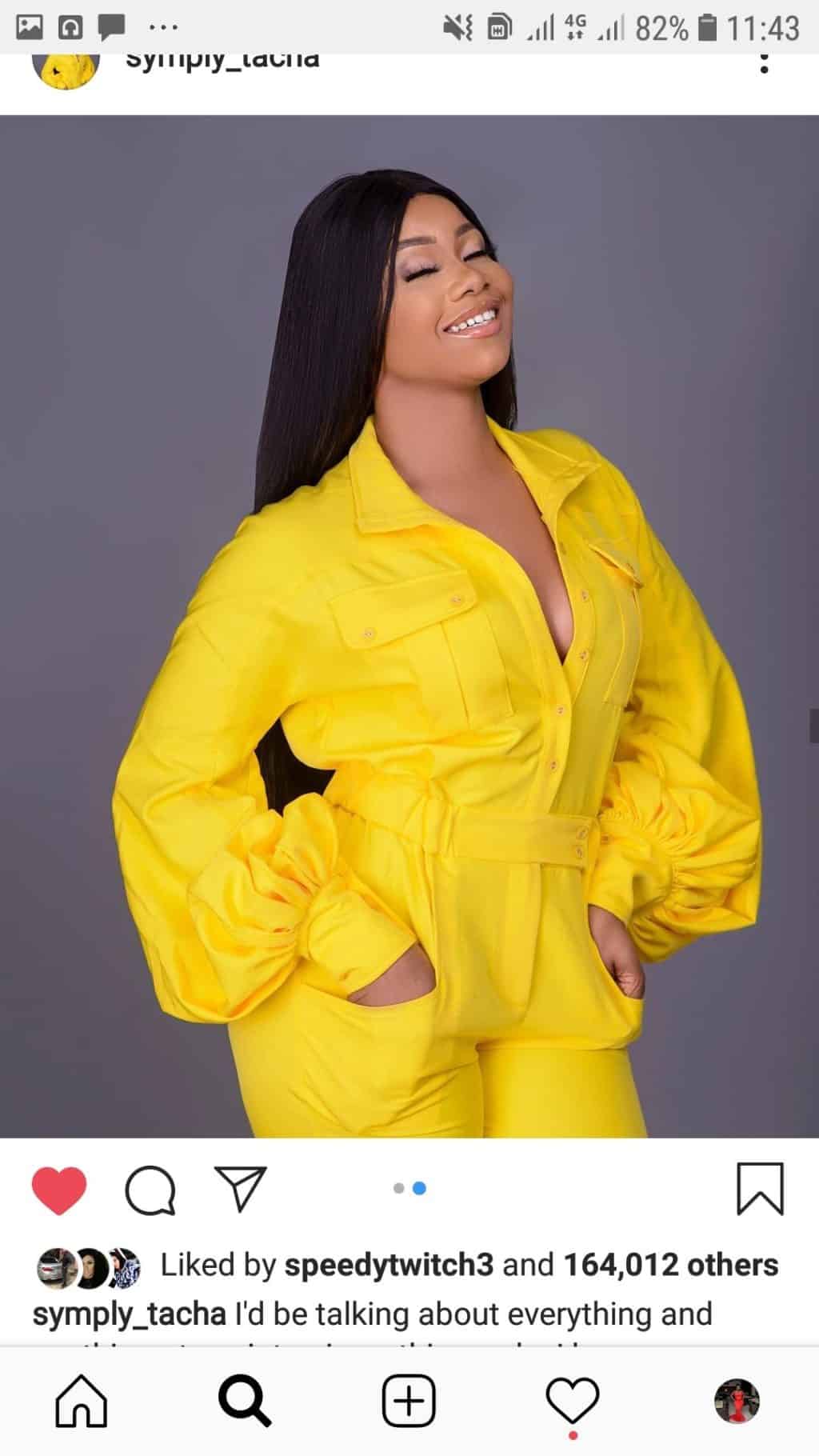 Tacha’s fan drags Mercy for wearing Tacha’s look-alike Jumpsuit