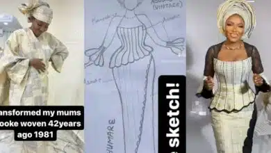A female tailor has impressed netizens as she skillfully transforms her mom’s old Aso-Oke of 42 years into present-day fashion.…