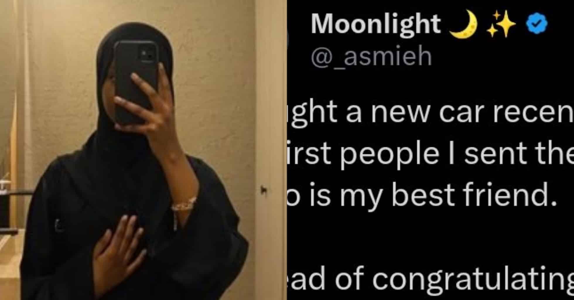 “How my best friend reacted after I sent photos of my new car to her” – Lady recounts