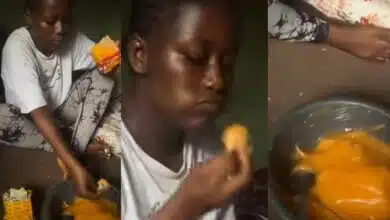 A Nigerian man takes an unexpected step by eating bread with spaghetti, as a paint of beans reportedly sells for…