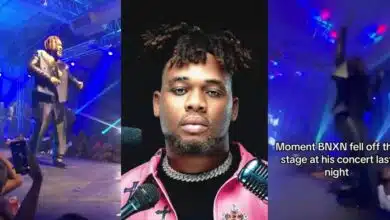 Heartbreaking moment as Bxnx falls off stage at his Lagos concert