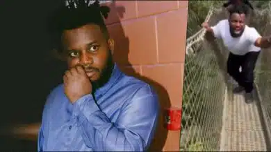 Moment Sabinus panicked during canopy walk in Lagos (Video)