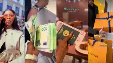 Nigerian lady declares herself ‘spoilt wife’, flaunts designers, pounds, car gift courtesy of husband online