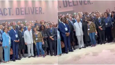 A video of an Oyinbo woman trying to block President Tinubu during a group photo with dignitaries at the COPE28…