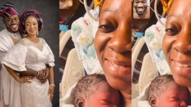 Deyemi Okanlawon shares adorable moment with newborn baby, surprises wife