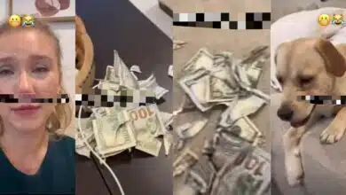 A Caucasian woman burst into tears as she showed off the multiple $100 dollar notes which her innocent-looking dog ate…