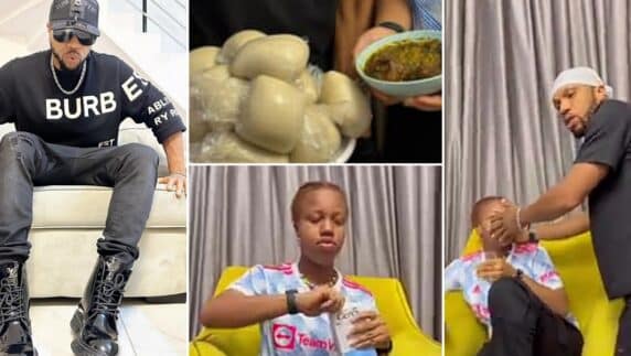 Charles Okocha descends on staff for serving his ‘phenomenal’ daughter big wraps of fufu (Video)