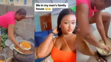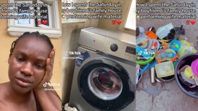 Lady showcases wife material skills as she cooks, washes clothes and dishes in her boyfriend’s family house (Video)