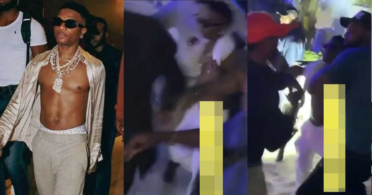 Moment overzealous fan throws phone at Wizkid to make a video on stage (Video)