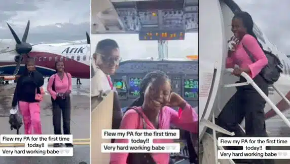 Nigerian lady warms hearts after booking a flight ticket for her Personal Assistant so she can have her first-time flight…