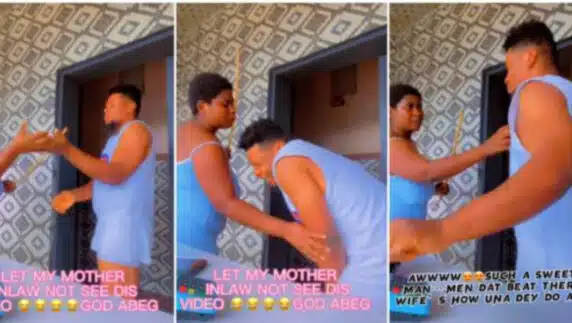 A Nigerian woman has taken to TikTok to share a video of herself playfully “flogging” her husband with a cane…